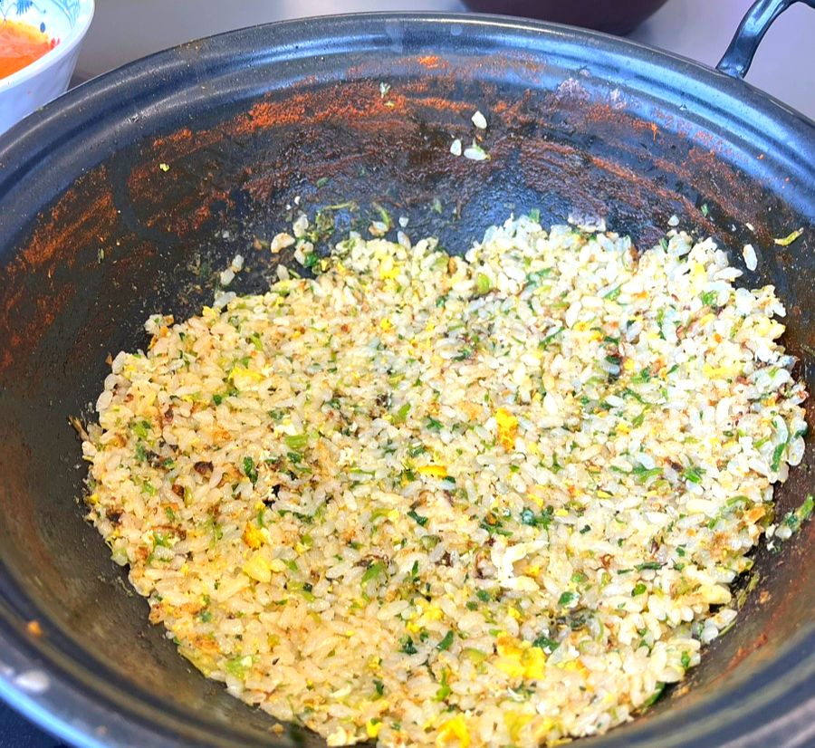 ๋ง๋ฌด๋ฆฌ๋ ๋ณถ์๋ฐฅ์ผ๋ก ํ๋๋ฐ, ์ฃผ๋ฐฉ์์ ๋ณถ์์ฃผ์ ์ ๋ฐ๋ก ์ ์ ๋๊ณ ๋๊ณ , ๊ณ๋ ๋ ธ๋ฅธ์์ ์ฑ๋๊ณ ์๊ฒ ์ฐ์ด ๋ฃ์ด ๊ณ ์ฌ๊ณ ์ฌํ๊ฒ ๋ณถ์์ก์ด.