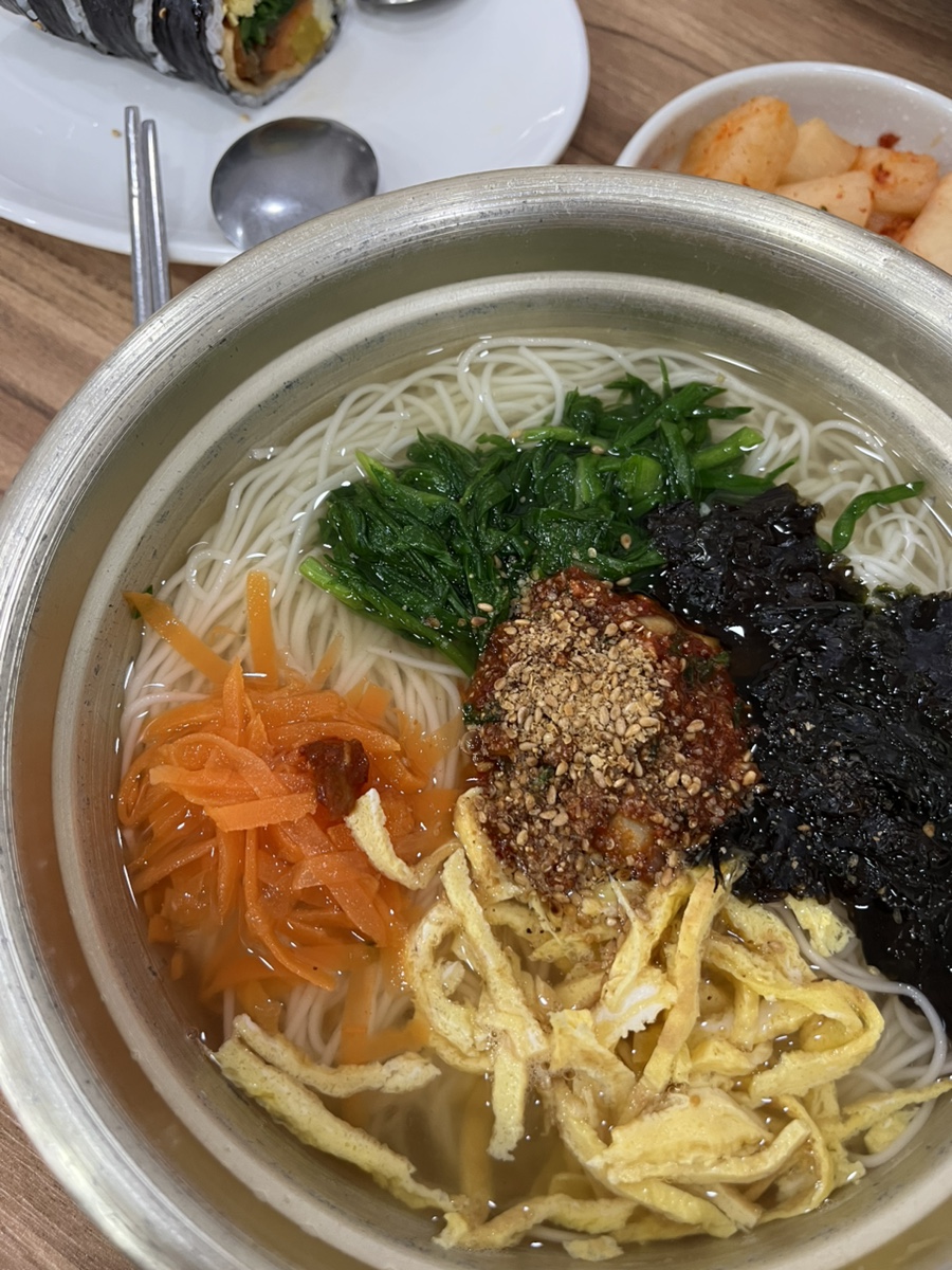- ์ํผ์ด ๋น๋น๋ฐฅ, ์ก์ฑ, ๋ถ์ถ์ , ๊น๋ฐฅ๋ ์์ด์ ๊ตญ์๋ ๊ณ๋ค์ด๊ธฐ ๋ฑ ์ข์.