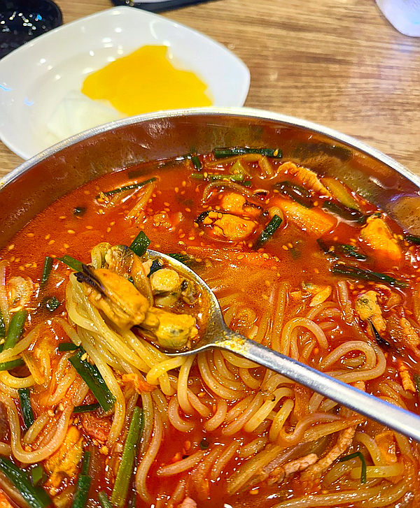 ํํฉ, ๋ฐ์ง๋ฝ, ์กฐ๊ฐฏ์ด, ์ค์ง์ด ๊ฐ์ ํด์ฐ๋ฌผ์ด ๋๋ํ๊ฒ ๋ค์ด์๊ณ , ์๊ฒ ์ฌ ๋ผ์ง๊ณ ๊ธฐ๊น์ง ๋ฌ๋ฟ ๋ค์ด ์์์ด.
