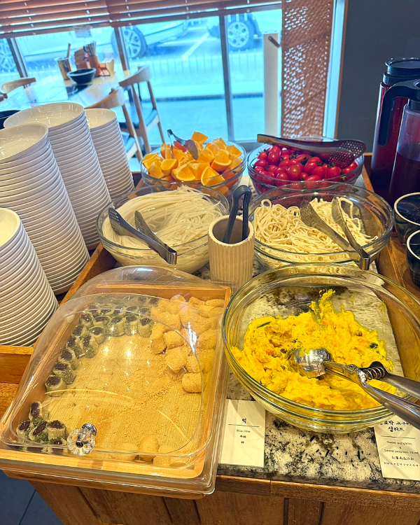 - ๋ง๋ฌด๋ฆฌ ์ฝ๋: ์นผ๊ตญ์, ์๊ตญ์, ์ฃฝ ์ฌ๋ฃ, ๊ณผ์ผ๊น์ง ์ค๋น๋์ด ์์ด์ ๋๊น์ง ๋ ๋ ํ๊ฒ ๋จน์ ์ ์์์ง.