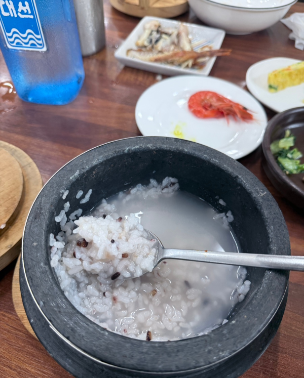 ์ ์ ๋ฉ๋ด์ ๋์ฅ๋ฐฅ์ด ํฌํจ๋ผ ์๋ค ๋ณด๋ ๊ณ์ ๋ฐฅ์ ์ง์ด๋ด๊ณ ์๋๋ผ๊ตฌ.