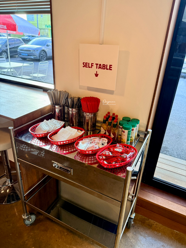๋งค์ฅ ํ์ชฝ์ ์ ํ ํ ์ด๋ธ์ด ๋ฐ๋ก ์์ด.