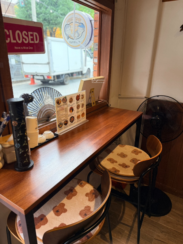 ํ์ชฝ์ ์ฐฝ๊ฐ๋ฅผ ๋ณด๋ 2์ธ ํ ์ด๋ธ์ด ํ๋ ์์ด.
