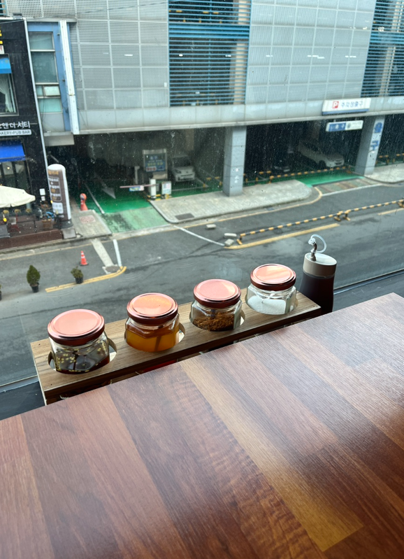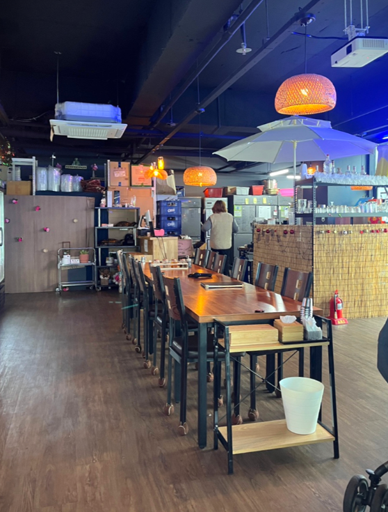 ์ค์์ ๋จ์ฒด ํ ์ด๋ธ์ด ์๊ณ , ์ฐฝ๊ฐ ์ชฝ์ 2~4์ธ์ฉ ํ ์ด๋ธ์ด ๋ง๋ จ๋ผ ์์ด.