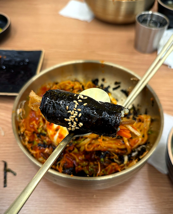๋ฐฅ์์ ์ค๊ธฐ๊ฐ ์์ ํ๋ฅด๊ณ , ์ด๋ฌต, ๋น๊ทผ, ์ฐ์์ด ์กฐํ๋กญ๊ฒ ์ด์ฐ๋ฌ์ ธ ์์์ด.