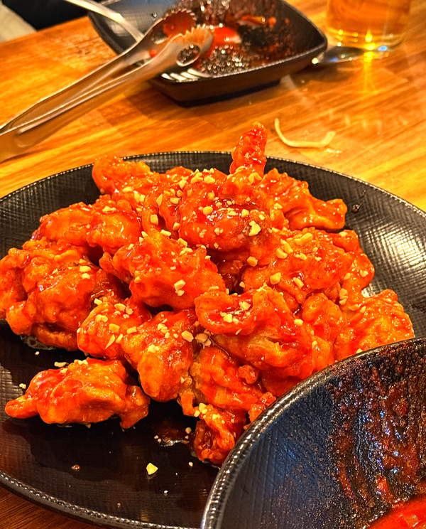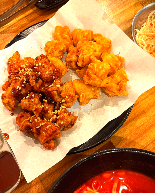 ๊ธฐ์กด ๋ฉ๋ด๋ฅผ ๋จน๋ค ๋ณด๋ ์๊ทผํ ๋ถ์กฑํด์ ์๋ ์นํจ์ ํ ๋ง๋ฆฌ ์ถ๊ฐ๋ก ์ฃผ๋ฌธํ์ด.