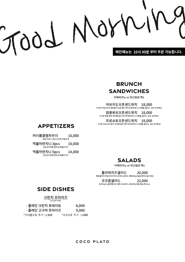 ์ฝ์ฝํ๋ผํ ์ ๋ฉ๋ด๋ ๋จ์ํ ๋ธ๋ฐ์น ์นดํ๊ฐ ์๋๋ผ, ์ ๋๋ก ๋ ์์ฌ๋ฅผ ์ฆ๊ธธ ์ ์๋ ๊ตฌ์ฑ์ด์ผ.