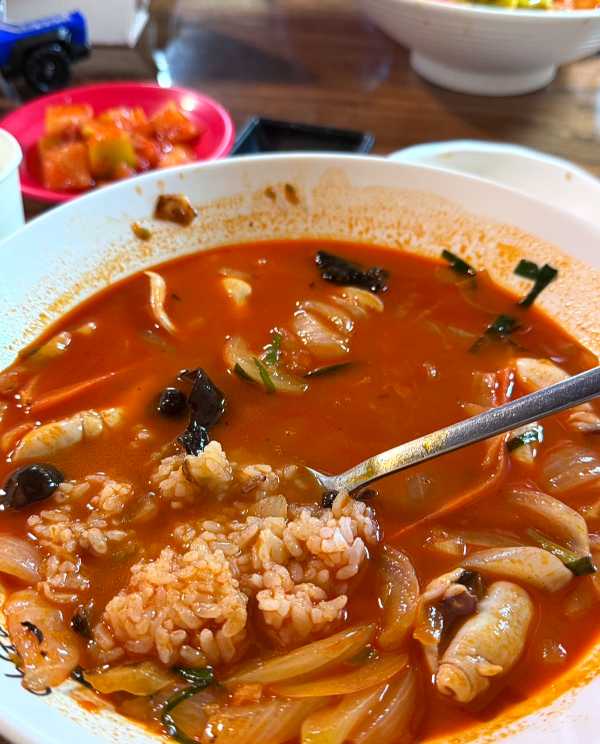 ๊ตญ๋ฌผ์ ์กฐ๊ฐ, ๊ฐ๋ฆฌ๋น, ๋์ง, ๊ฝ๊ฒ, ๊ธฐ์ฅ ๋ฏธ์ญ๊น์ง ๋ค์ด ์์ด์ ํด์ฐ๋ฌผ ํ๋ฏธ๊ฐ ํ ๋๊ปด์ก์ด.